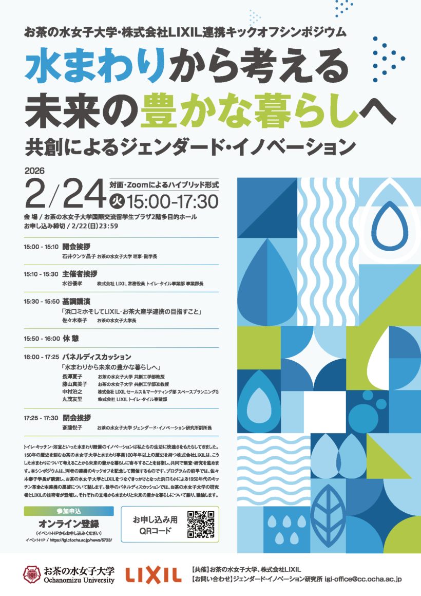 お茶の水女子大学・株式会社LIXIL連携キックオフシンポジウムを開催します(2026年2月24日)