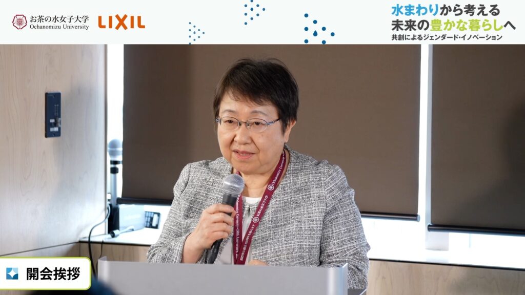 お茶の水女子大学理事・副学長、そしてジェンダード・イノベーション研究所長を務める石井クンツ昌子による開会挨拶では、お茶の水女子大学とLIXILとの関係が、戦後のステンレス製のシステムキッチンの開発にさかのぼることが説明された。
