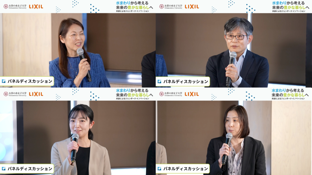 続くパネルディスカッションには、LIXILからはセールス&マーケティング部中村治之氏とトイレ・タイル事業部丸茂友里氏、お茶の水女子大学からは共創工学部長澤夏子教授と藤山真美子准教授が登壇した。