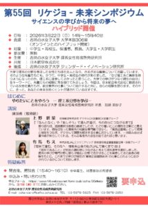 IGIが後援する「第55回リケジョ ― 未来シンポジウム:サイエンスの学びから将来の夢へ」のご案内です。